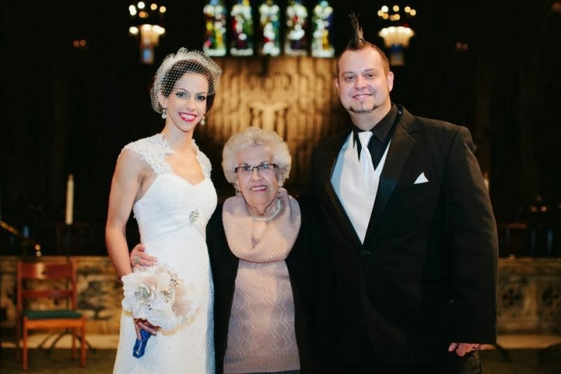 Gram at our wedding, October 2012 (My bouquet wrapped in the pearls Grandpa gave her on their wedding day) |